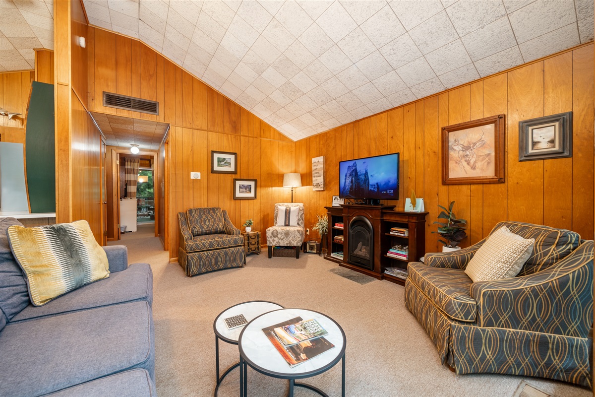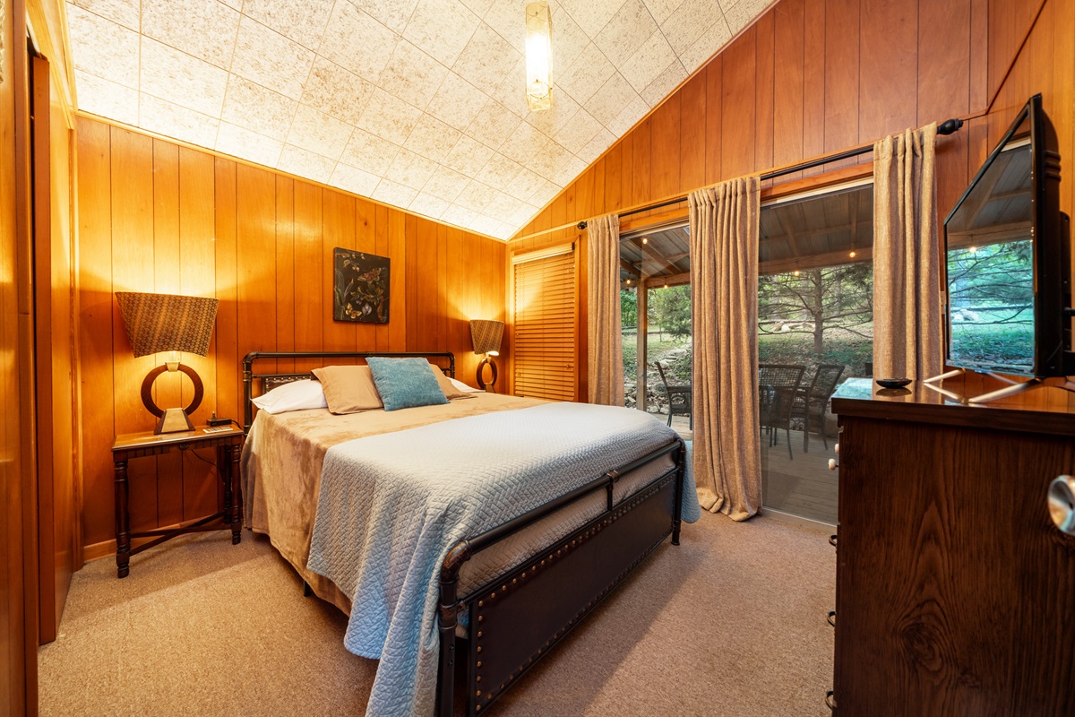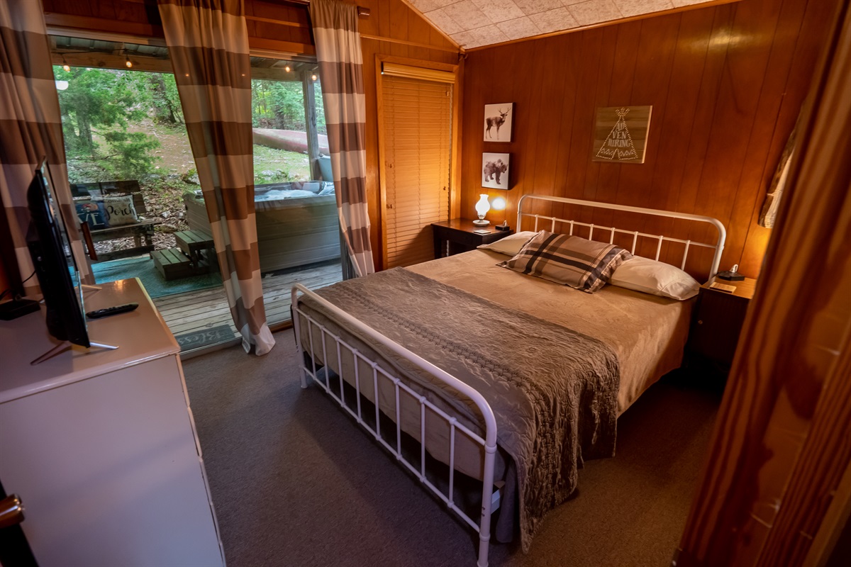 2 Bedrooms • 1 Bathroom 1 Bath • Sleeps 3-6Enjoy the treehouse feel of this 1966 cabin with summer shade and winter panoramic view of the bluffs. Couples will value the private wooded location. Two Queen bedrooms and a Queen sofabed will accommodate up to 5. Grill and dine on the decks, soak in the hot tub on the private tin-roofed porch or roast marshmallows over the back yard fire pit. Close to South Fork and Spring rivers, golf courses, lakes, and historic Hardy town. Shop, float, fish, hike, golf, and explore the Ozarks!